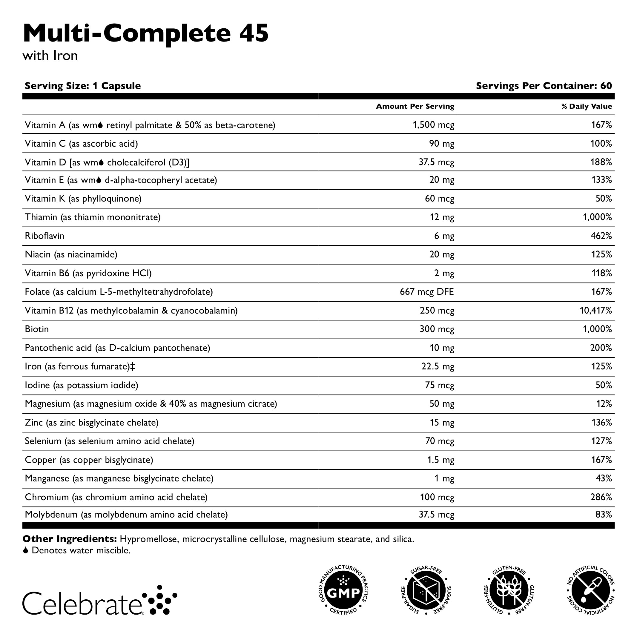 Autres ingrédients : Hypromellose, cellulose microcristalline, stéarate de magnésium et silice. Sans gluten. « wm » désigne miscible dans l'eau.