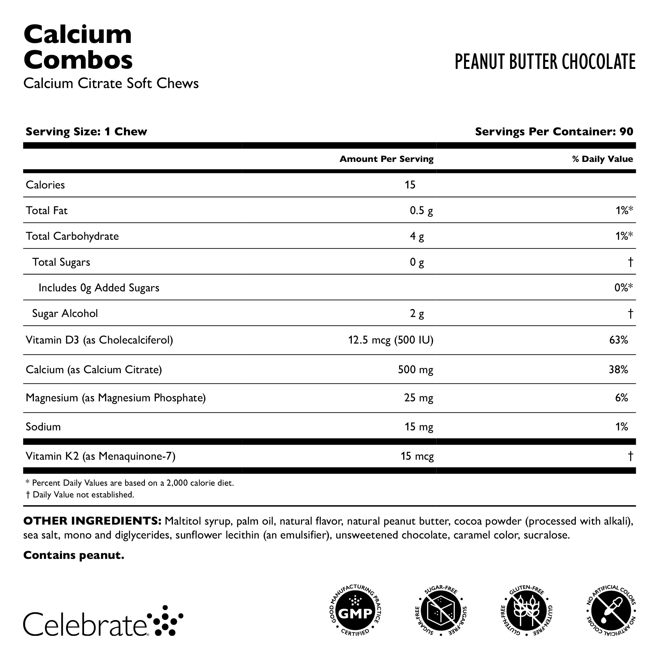 Unsere Celebrate Kalziumzitrat Combos vereinen zwei großartige Geschmacksnoten zu einem Kaubonbon.